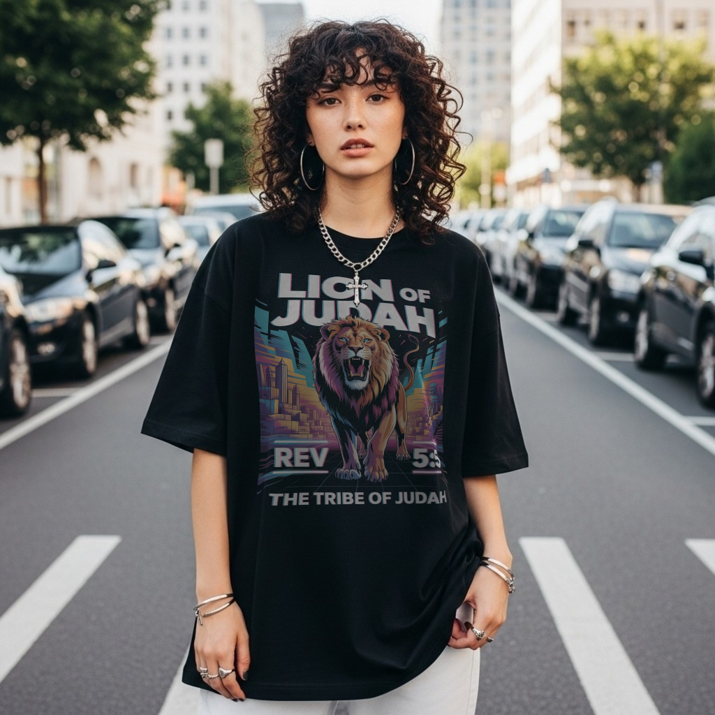 Walk boldly in the Lion of Judah – Cyber Glow Tee. Inspired by Revelation 5:5, this design blends faith, courage, and modern urban style. The roaring lion, set against a vibrant neon cityscape, symbolizes Christ’s unshakable authority and victorious power.